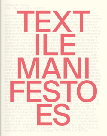 The original project TEXTile Manifestoes emerged out of a cross-disciplinary collaboration between several studios at the Academy of Arts, Architecture and Design in Prague. Students from the Studios of Fashion and Footwear Design, Graphic Design, Visual Communication and Type Design as well as Photography II worked together to weave textiles and discourses alike to design their manifestoes by combining fashion collections with burning contemporary issues such as mass surveillance, artifical intelligence or virtual reality but also to more private struggles of identity, memory and (mental) health. The students’ works were later complemented by and (re)contextualised with international contributions ranging from ancient Andean textile studies to neuropsychoanalysis or from literary and art criticism to aesthetics and musicology. With texts by Kyle Allan, Jayson Althofer, Erik Annerbo and many more.